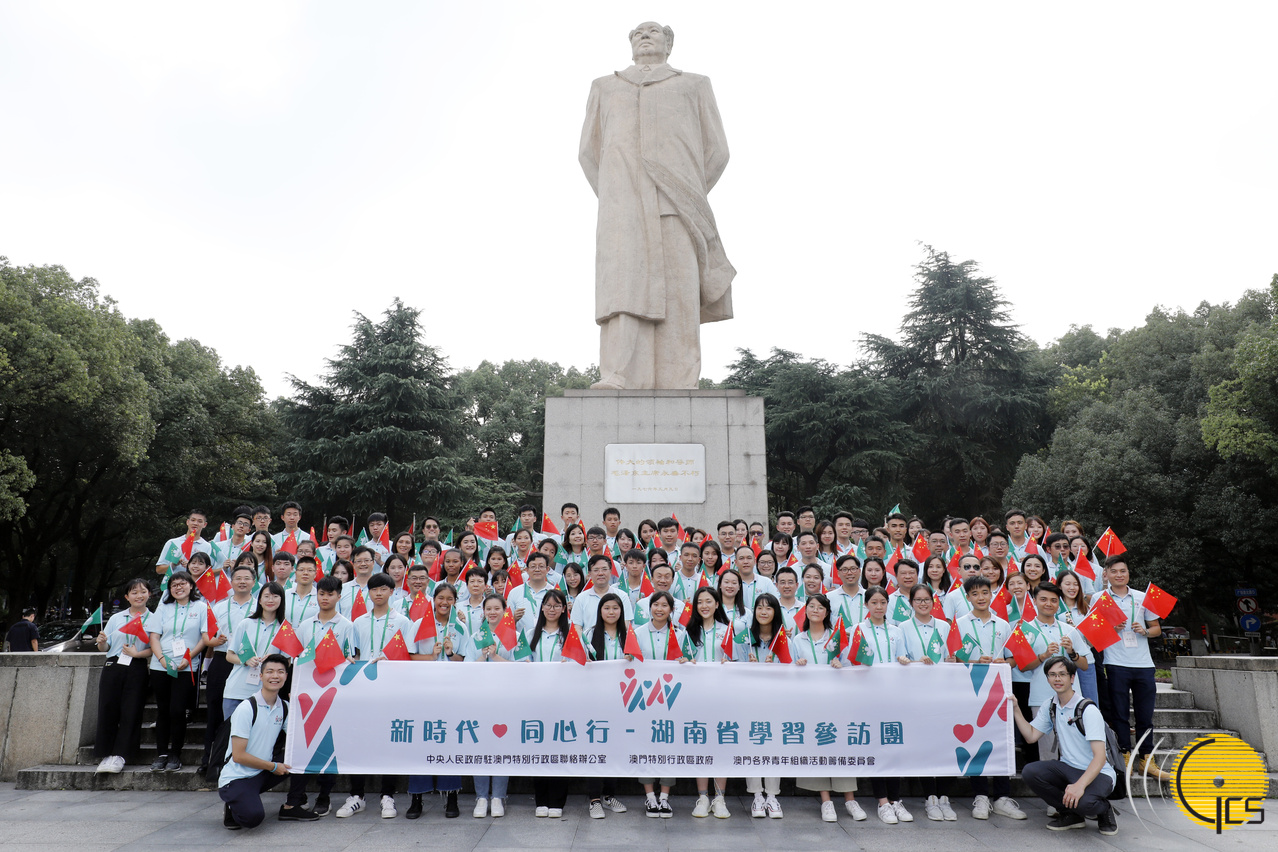 • The Secretary for Social Affairs and Culture, Mr Tam Chon Weng, who is leading the youth delegation to Hunan Province, joins a singing of Chinese song “Me and My Motherland”at Dong Fang Hong square of the Hunan University in Changsha Municipality.