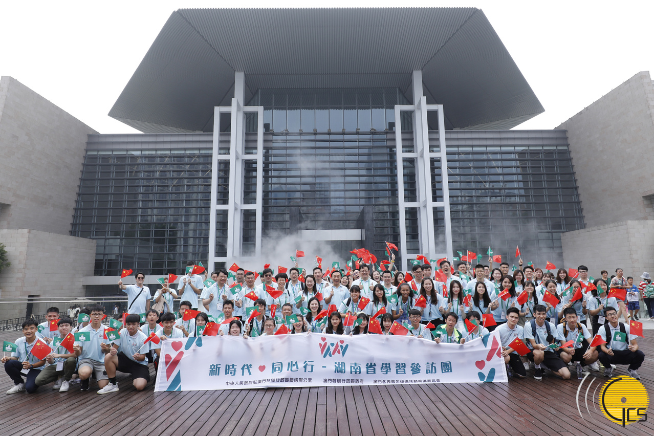 • The Secretary for Social Affairs and Culture, Mr Tam Chon Weng, and members of the youth delegation to Hunan Province, pose for a group photo at the Hunan Museum in Changsha Municipality.