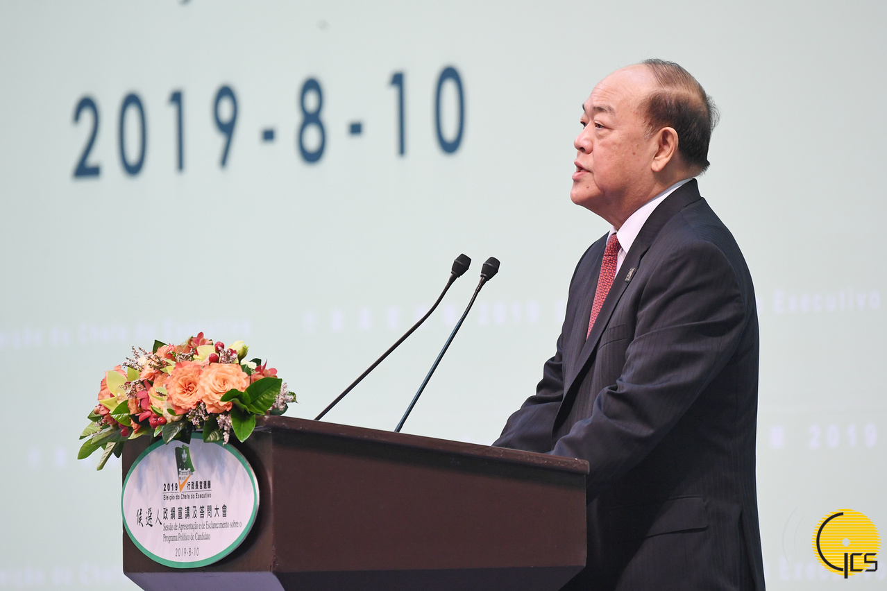 • The candidate for the Fifth Chief Executive Election of the Macao Special Administrative Region, Mr Ho Iat Sang, presents his election platform.