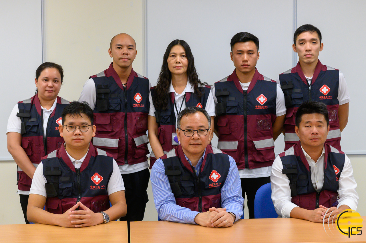 • Representatives of the China International Emergency Medical Team (Macao) speak to reporters on the award of the Government's Medal for Distinguished Service – Medal for Bravery.