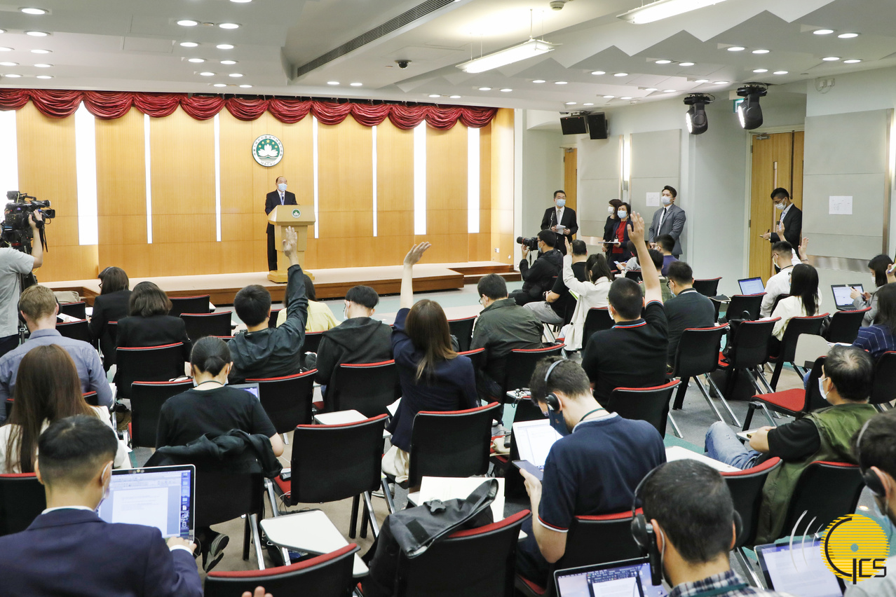 • The Chief Executive, Mr Ho Iat Seng, meets the press at the Government Headquarters after delivering the Policy Address for the Fiscal Year 2020 to the Legislative Assembly.