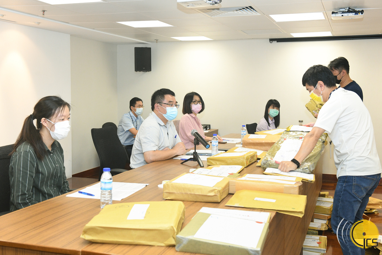 • Officials of the Infrastructure Development Office open tender documents for foundation and basement construction of a public housing project at lot B10 in the New Urban Zone Area A.