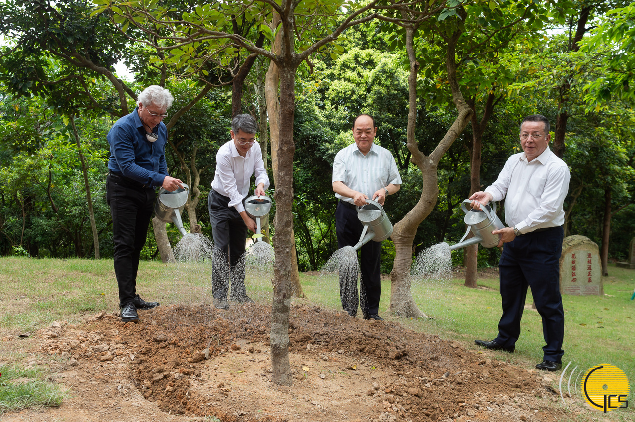 The Chief Executive, Mr Ho Iat Seng, plants local-variety Machilus chinensis trees at Taipa Pequena 2000 Circuit, with the aim of spurring the Macao public to treasure nature. Accompanying Mr Ho in the tree-planting activity are the Secretary for Administration and Justice, Mr Cheong Weng Chon; the Chairman of the Administration Committee on Municipal Affairs of the Municipal Affairs Bureau, Mr Jose Maria da Fonseca Tavares; and the Chairman of the Consultative Committee on Municipal Affairs of the Municipal Affairs Bureau, Mr António José Dias Azedo.