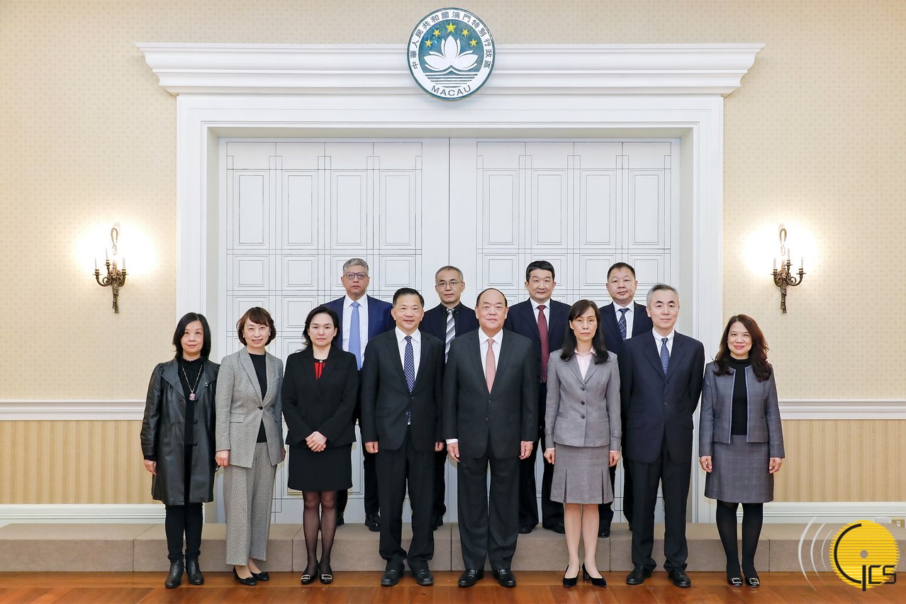 • The Chief Executive, Mr Ho Iat Seng takes a group photo with the Vice Minister of the Publicity Department of the Communist Party of China (CPC) Central Committee, President and Editor-in-Chief of China Media Group, Mr Shen Haixiong, in Macao.