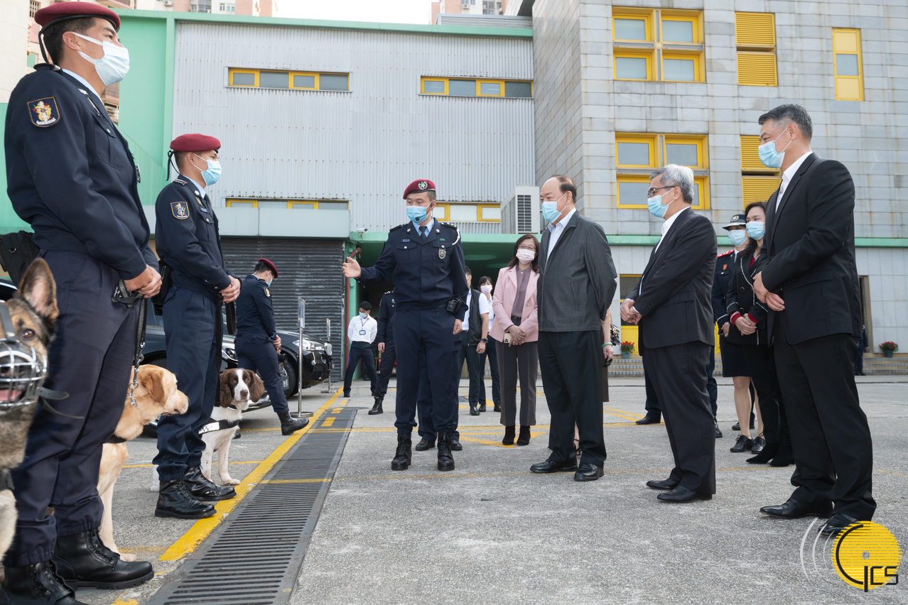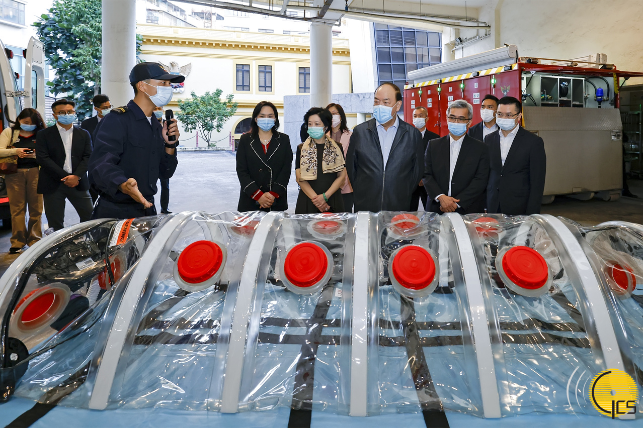 • The Chief Executive, Mr Ho Iat Seng, has a friendly chat with fire officers during a visit to the Central Station of the Fire Services Bureau, expressing his gratitude to their dedication and hard work in order to keep Macao safe.