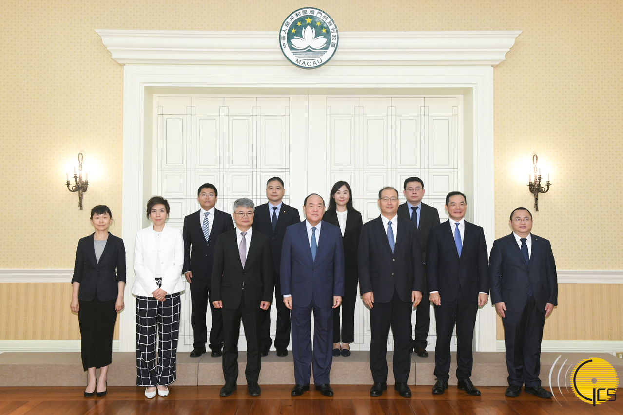 • The Chief Executive, Mr Ho Iat Seng, poses for a group photograph with the Executive Director of Bank of China, Mr Lin Jingzhen, during a meeting held at the Government Headquarters.