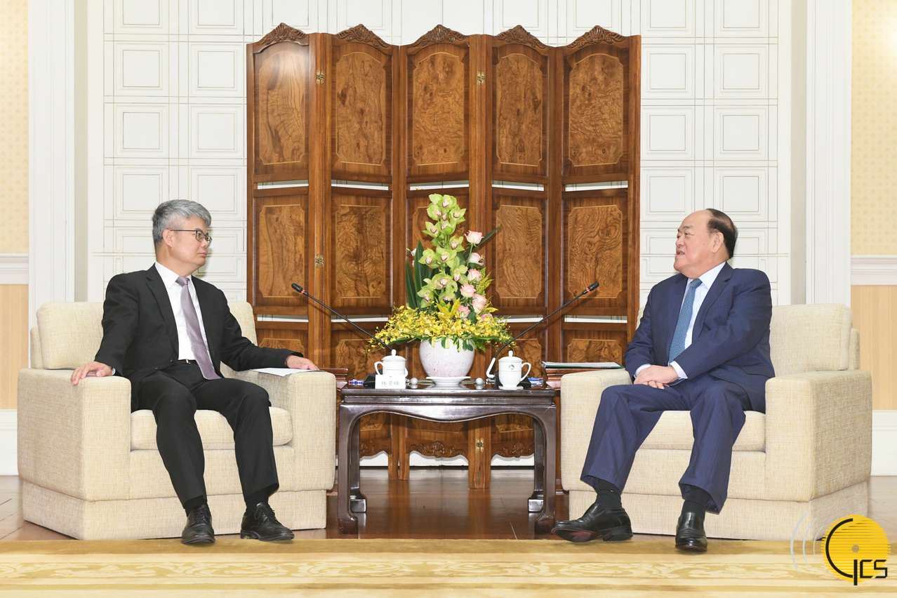 The Chief Executive, Mr Ho Iat Seng, meets with the Executive Director of Bank of China, Mr Lin Jingzhen, at the Government Headquarters.