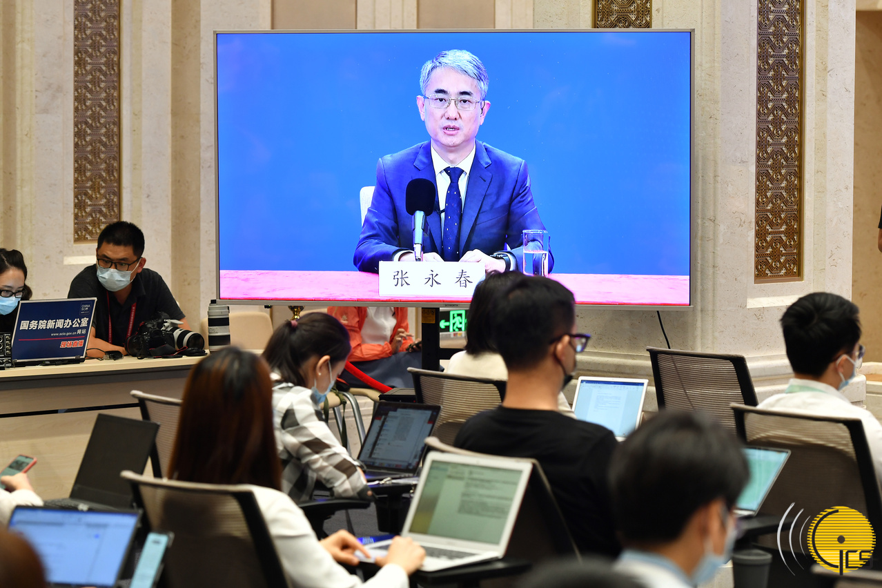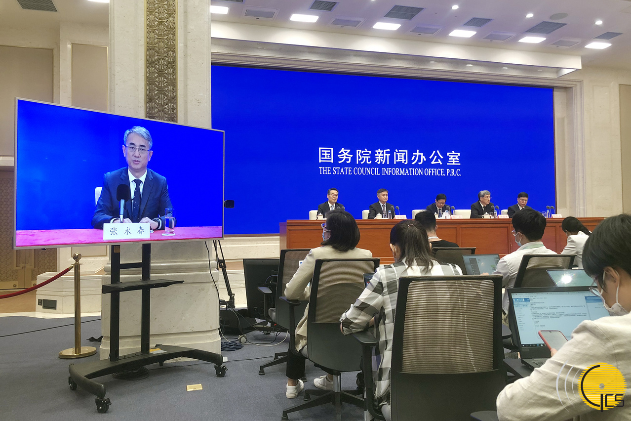 The Secretary for Administration and Justice, Mr Cheong Weng Chon, represents the Macao Special Administrative Region in a press conference regarding the development of Hengqin and Qianhai held in Beijing by the State Council Information Office and takes reporters' questions via video link.
