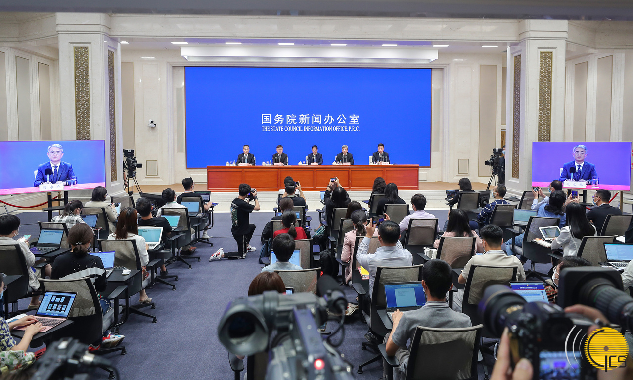 • The Secretary for Administration and Justice, Mr Cheong Weng Chon, represents the Macao Special Administrative Region in a press conference regarding the development of Hengqin and Qianhai held in Beijing by the State Council Information Office and takes reporters' questions via video link. (Photo from Xinhua)