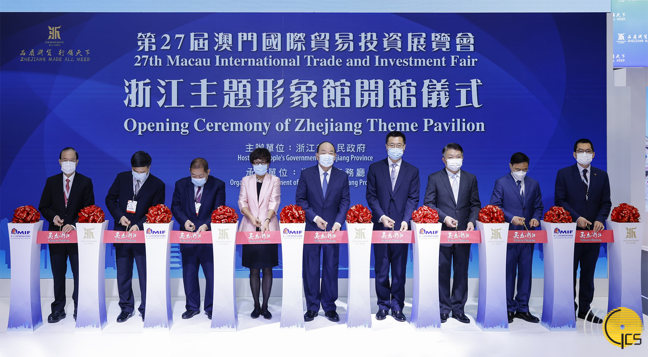 • The Chief Executive, Mr Ho Iat Seng, and Vice Governor of Zhejiang Province, Mr Lu Shan, attend the opening ceremony of the Zhejiang Theme Pavilion at the 27th Macao International Trade and Investment Fair.