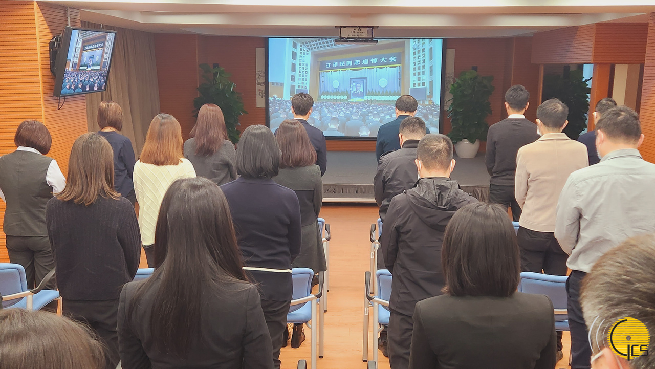 Officers of the Commission of Audit watch a live broadcast of the memorial service of the nation's former president, Mr Jiang Zemin, and observe three minutes of silence in sync with the ceremony's proceedings.