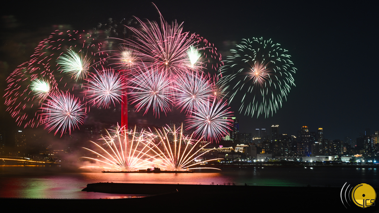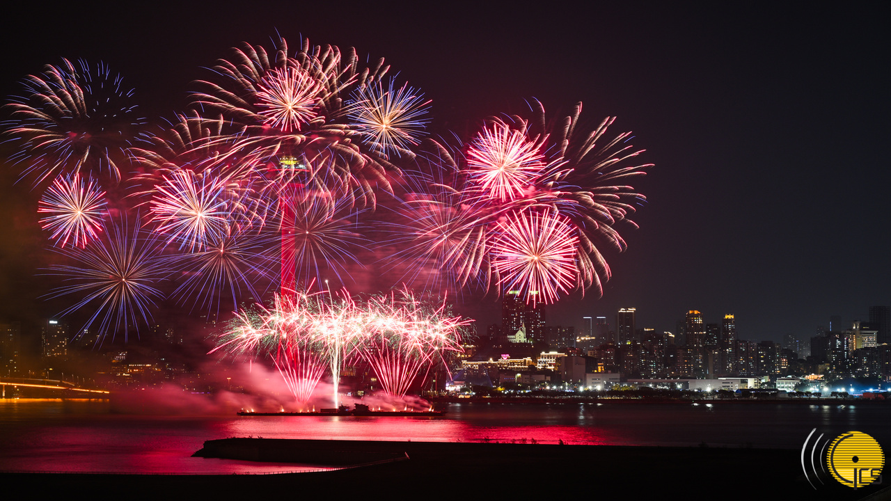 • "Chinese New Year Fireworks Display" show lights up the sky above the sea overlooked by Macau Tower. The colourful fireworks are a wonderful celebration at beginning of the Year of the Dragon.