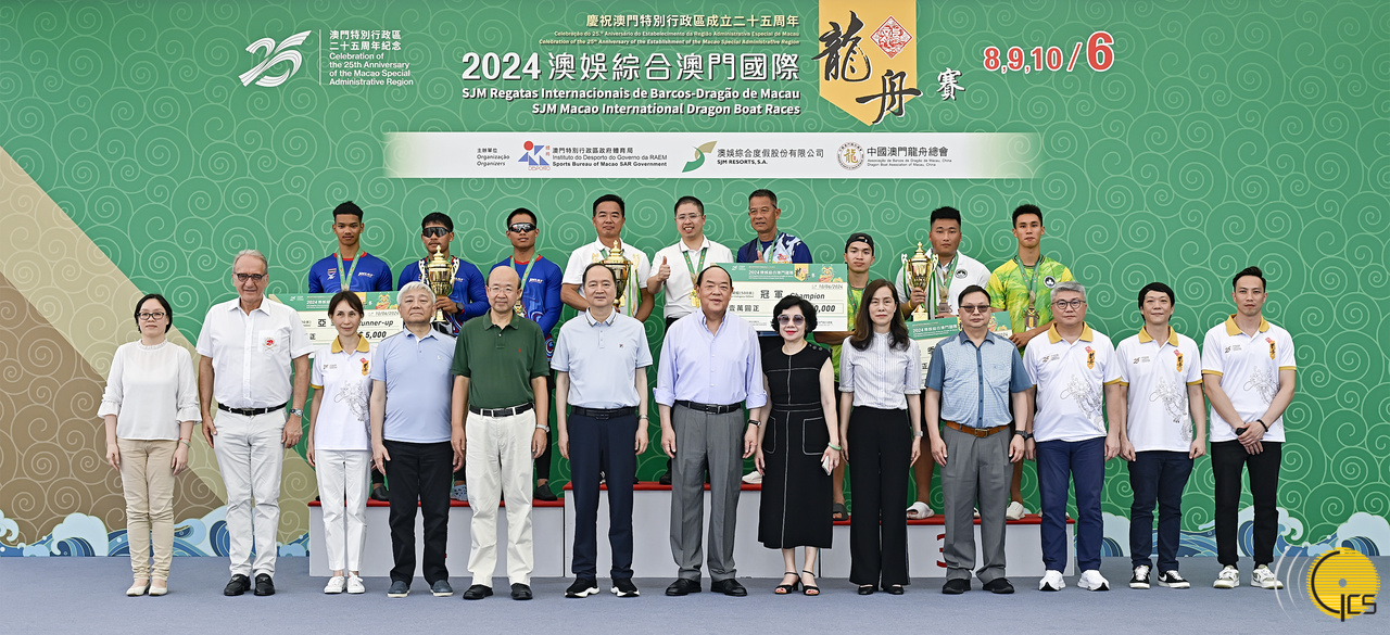 • The Chief Executive, Mr Ho Iat Seng, officiates at the award presentation ceremony for the standard dragon boat race under the open category of the 2024 Macao International Dragon Boat Races.