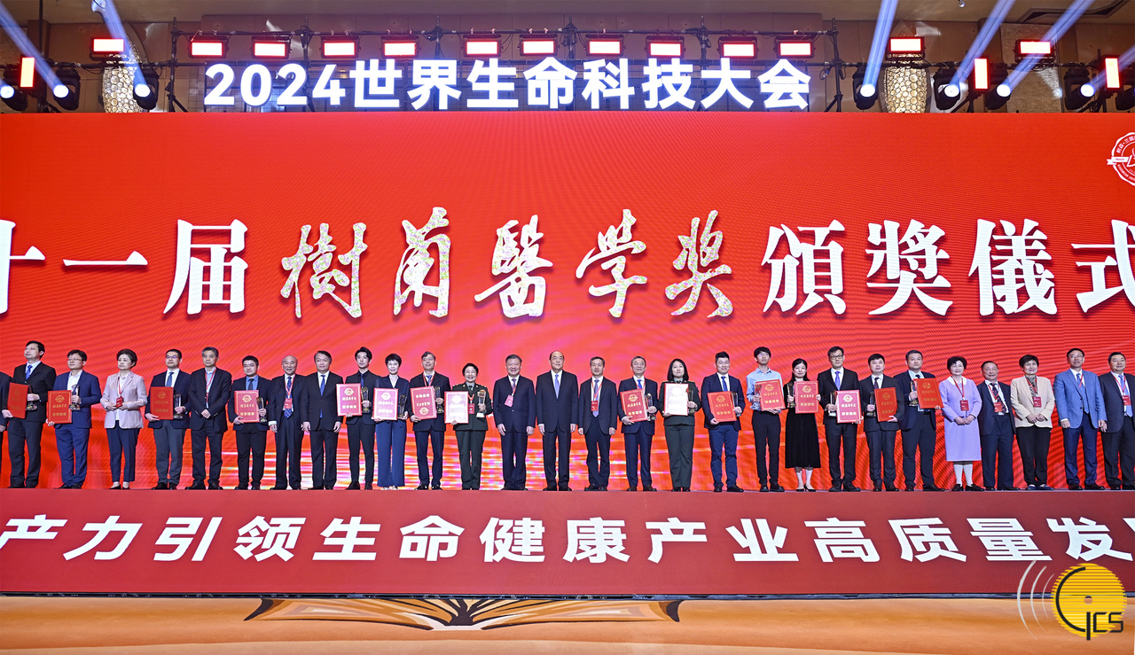 • The Chief Executive, Mr Ho lat Seng, poses for a group photograph with winners of the 11th edition of Shulan Medical Award, while at the the World Science and Technology of Life Conference cum the Chinese Academy of Engineering seminar on science technology, held in Henggin.