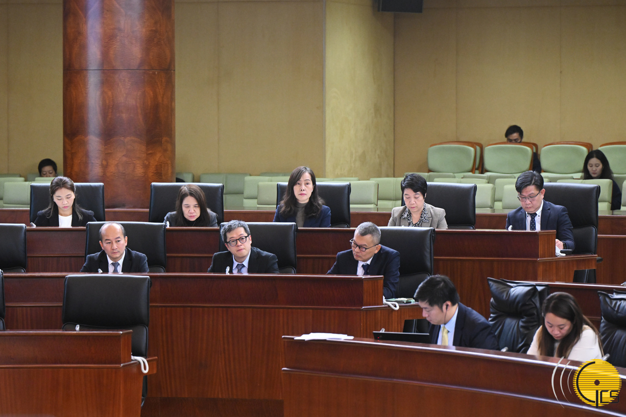• The Secretary for Social Affairs and Culture, Ms Ao Ieong U, attends a plenary session of the Legislative Assembly to take questions raised by Legislative Assembly members.