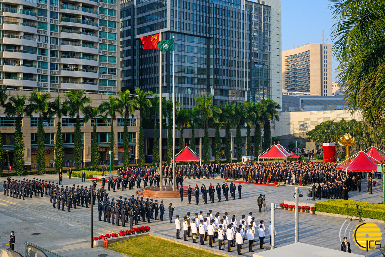 • The flag-raising ceremony in celebration of the 25th anniversary of the establishment of the Macao Special Administrative Region is held at the Golden Lotus Square.