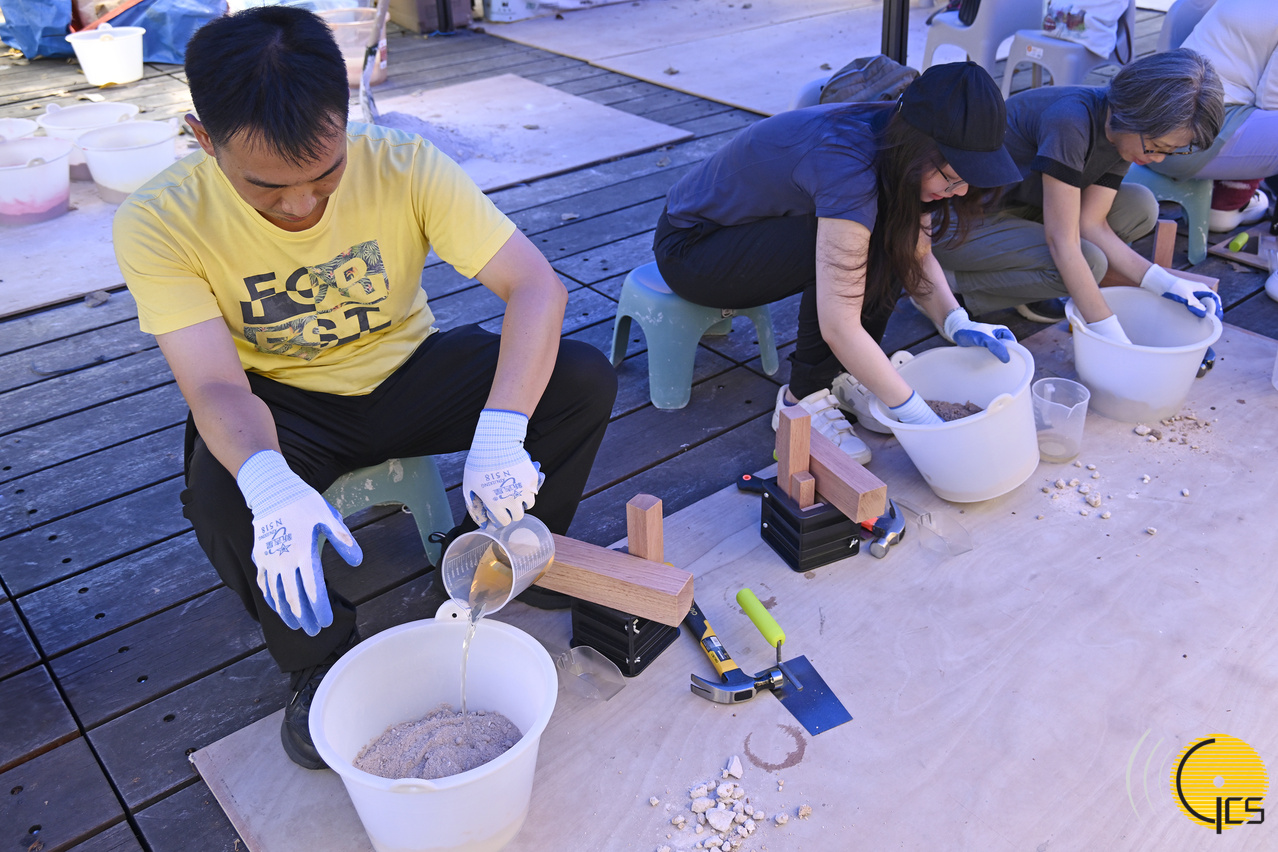• Participants in the “Practical Rammed Earth Wall Restoration Workshop” get to mix and test repair materials, to experience heritage conservation firsthand.