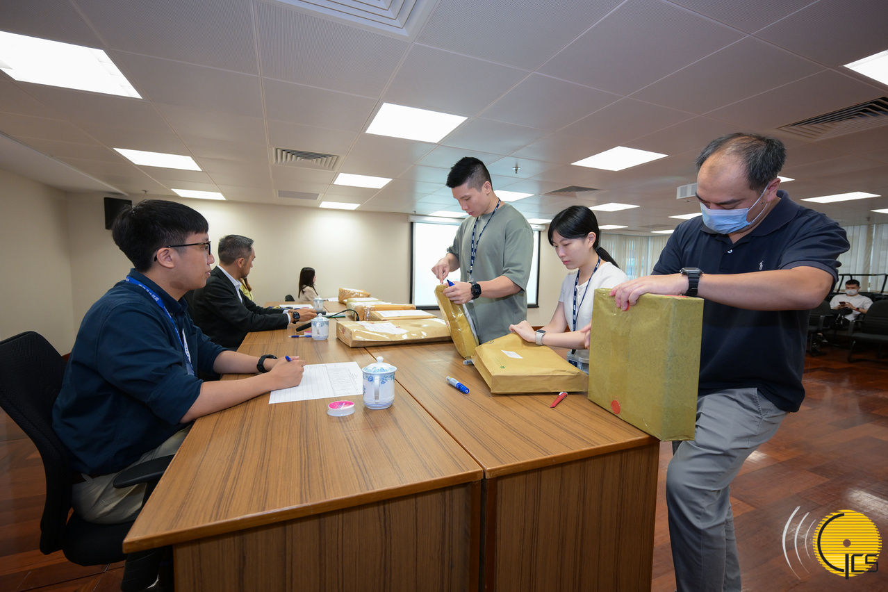 Officials of the Public Works Bureau open tender documents for the capacity expansion work of the Seac Pai Van Reservoir in Coloane.