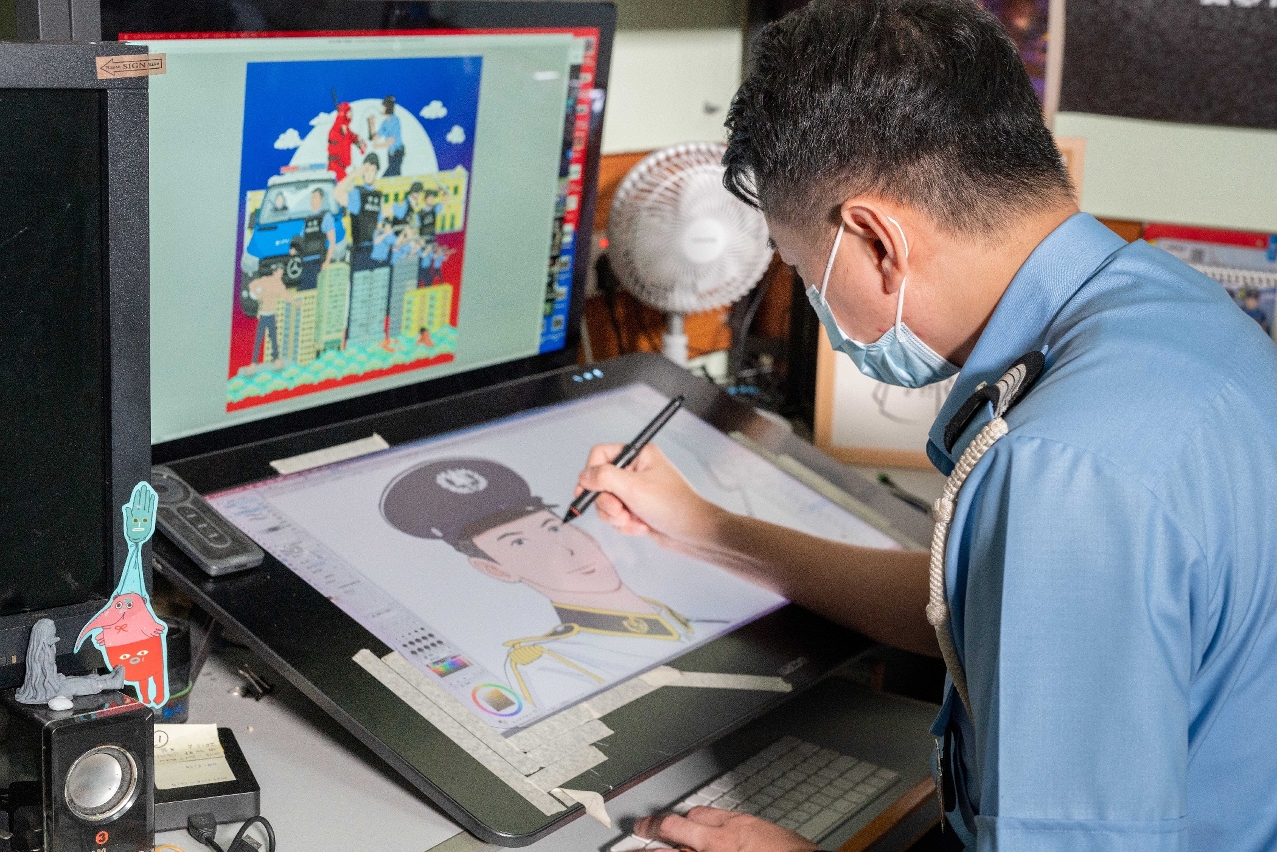 Among the team, there are many different types of creative experts. Some are focused on illustration and comics, while others work on graphics, animation, and 3D modelling. One of the more established artists is Chief Constable Lei Wai Man, who is in charge of all of the publicly displayed comic art.
