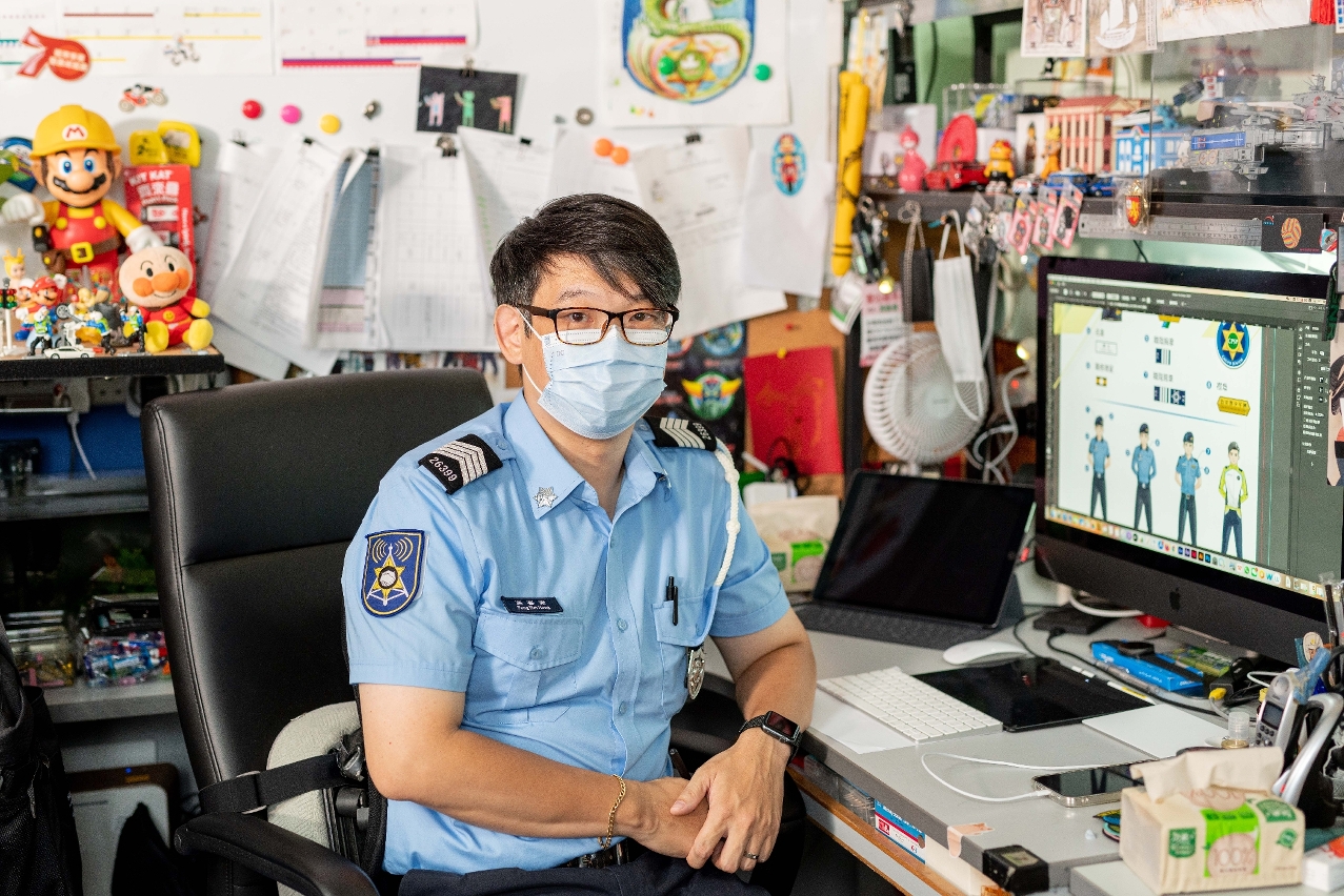 She returned to Macao in 2014, she applied to join the police force in 2016. “I’ve been here for three years now,” Kong says. “My work is very fun because I have the freedom to decide how the animations should move.”