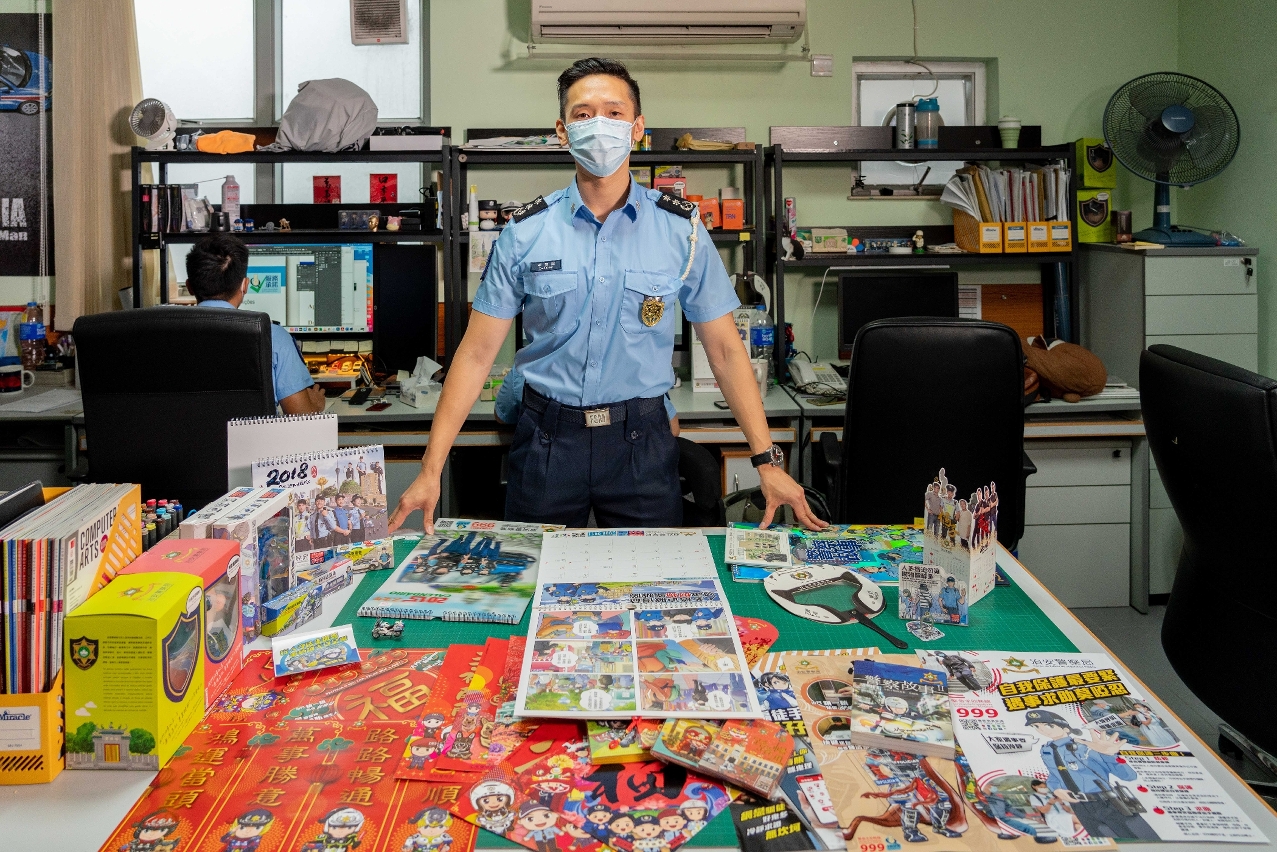Chief Constable Lei finds inspiration for his police comics everywhere, especially the daily happenings in the city. For instance, if the police force logs a series of crimes, Lei and the rest of the creative team may propose a public service campaign on crime prevention to inform and educate the public.