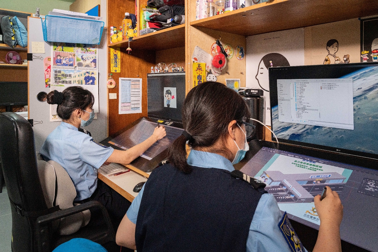 Another member of the team is Chrissie Kong, who works on the force’s various animation projects. Kong loved to draw growing up and eventually studied design at a university in mainland China at Huaqiao University in 2011. She also enrolled in an exchange programme in Taiwan, where she studied Multimedia Art Animation at National Taiwan University of Arts in 2013.
