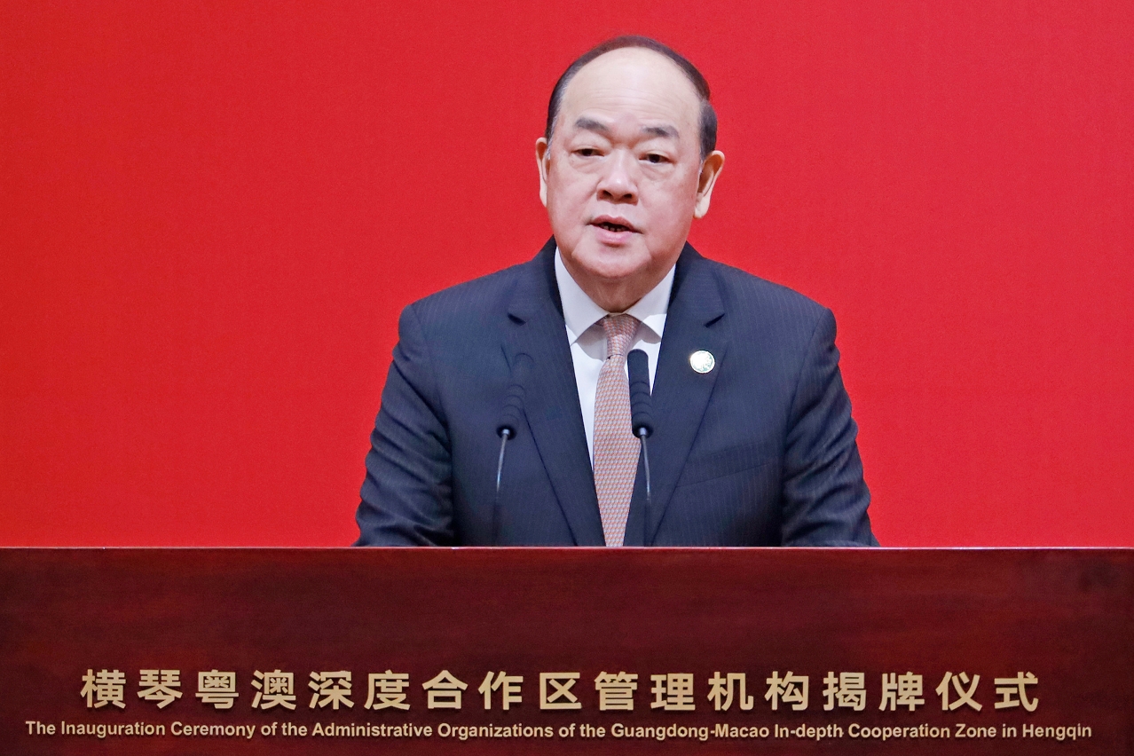 Macao Chief Executive Ho Iat Seng attended the inaugural ceremony of the Guangdong–Macao Intensive Cooperation Zone丨Photo courtesy of the Government Information Bureau