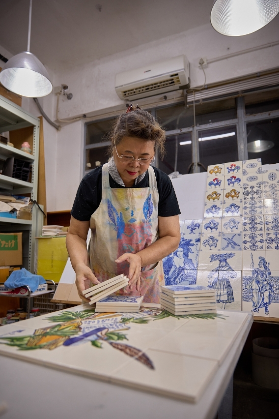 At Casa de Portugal (CPM) – a non-profit association that aims to promote and preserve Portuguese culture in Macao – a large studio welcomes people of all ages and skill levels to join workshops focusing on the creative industries, including painting azulejos.