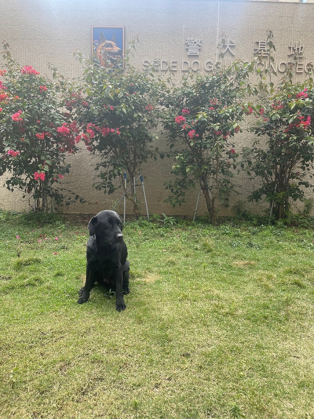 Tina, a former drug detection Labrador, is enjoying retirement at the base | Photo courtesy of the Public Security Police Force of Macao