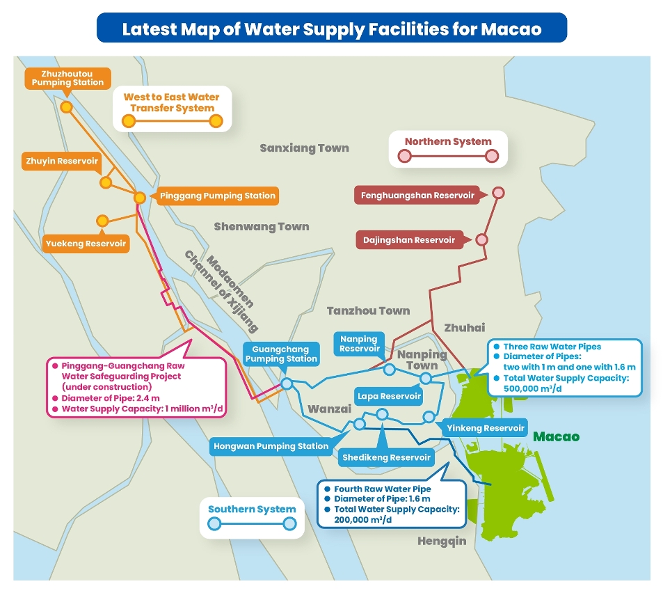 An image courtesy of the Marine and Water Bureau illustrates the journey Macao's water supply takes from the mainland