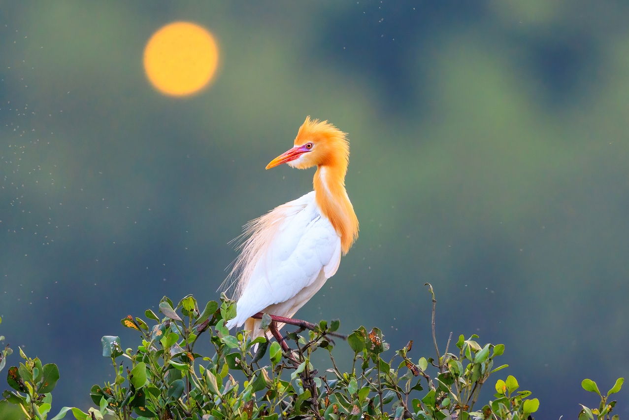 As its name suggests, cattle egrets (Bubulcus ibis) follow cattle around to feed on insects that gather on them. During the winter, the bird is white as snow, making its orange beak stand out. But in this picture, taken during the breeding period in May, the colour of the bird's head and neck has changed to orange, while the beak has turned purple and red | Photo by João Monteiro