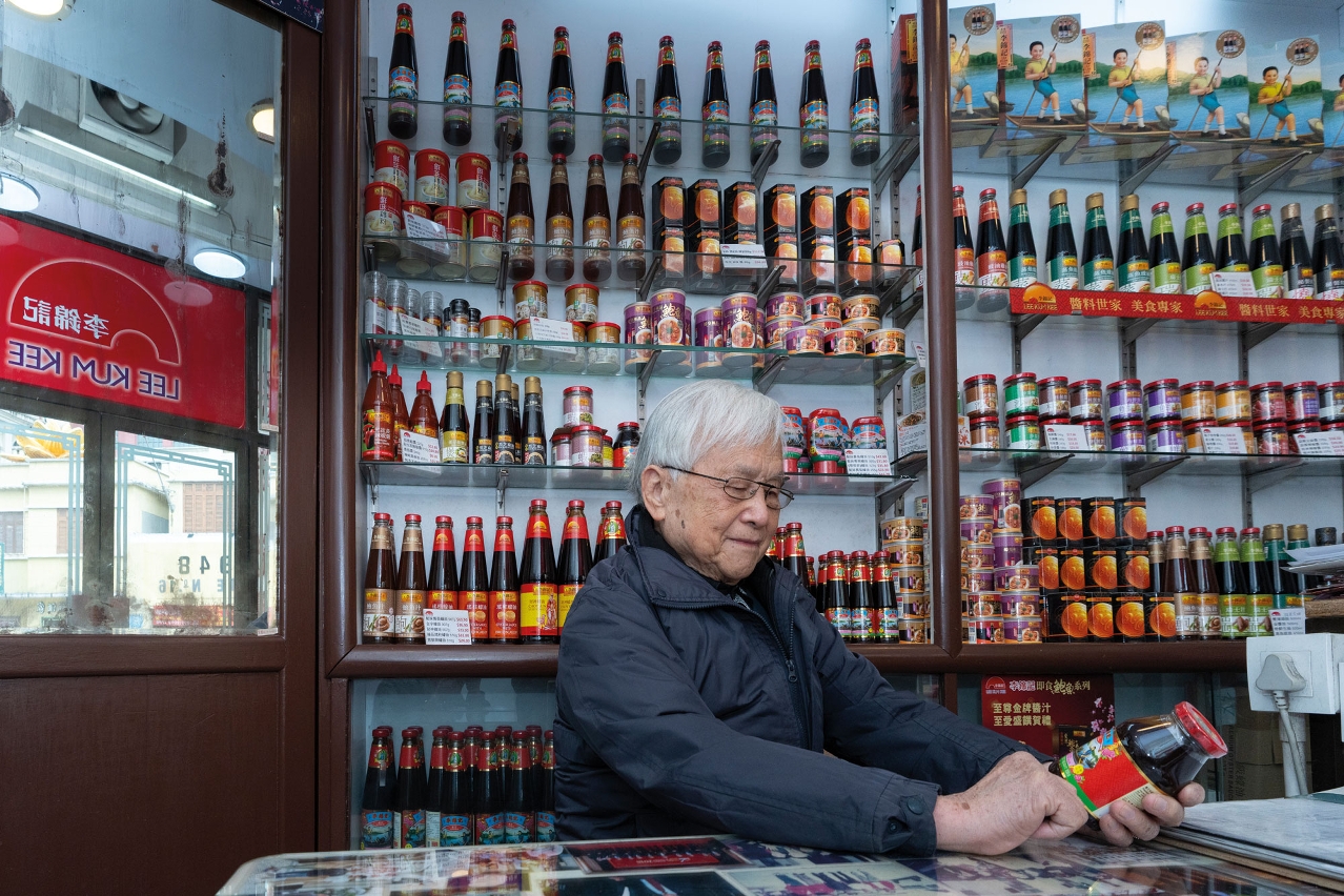 Chang is 88 years old and has worked at Lee Kum Kee’s Macao branch for 74 of them. Known to locals as Uncle Vai, he dutifully opens the store every morning and smiles as he helps loyal customers locate their favourites of the brand’s 200-plus products (oyster sauce is perhaps the most popular). Each transaction is hand-recorded in Chang’s trusty notebook.