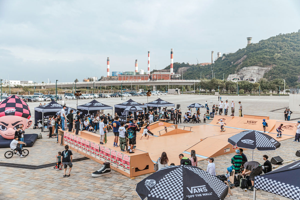 A makeshift skatepark used for a Vans-sponsored skateboarding event organised by the Macau Skateboarding Sports Culture and Development General Association in Coloane, back in 2023