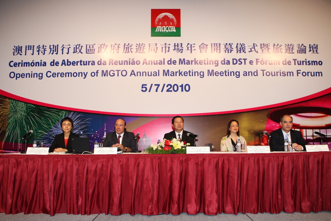 Macau Government Tourist Office’s Annual Marketing Meeting and Tourism Forum kicked off this morning (July 5) at the Macau Tower Convention and Entertainment Center. Secretary for Social Affairs and Culture Cheong U was present at the opening ceremony and delivered the opening speech. MGTO invited speakers from various departments to the Tourism Forum - “Connecting History and the Future: New Opportunities for Macau’s Tourism Development” which was attended by 300 travel trade representatives.