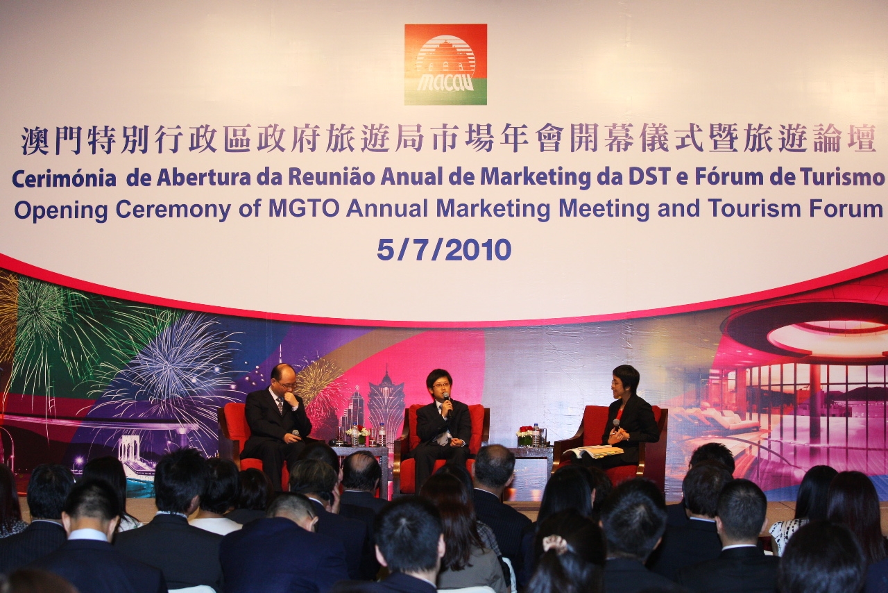 The Forum was moderated by Deputy Director of MGTO Maria Helena de Senna Fernandes, with Lao Iong, Head of Urban Panning Department, Land, Public Works and Transport Bureau, Kuong Vai Cheok, Head of Transport Planning and Development Department, Transport Bureau, Cheong Cheok Kio, Head of Cultural Heritage Department, Cultural Affairs Bureau and Cheng Wai Tong, Head of Research and Planning Department, MGTO as speakers on two panels: “The Short and Medium-term City Development and Strategies for Macau” and “Heritage and Cultural Tourism and E-marketing” respectively.