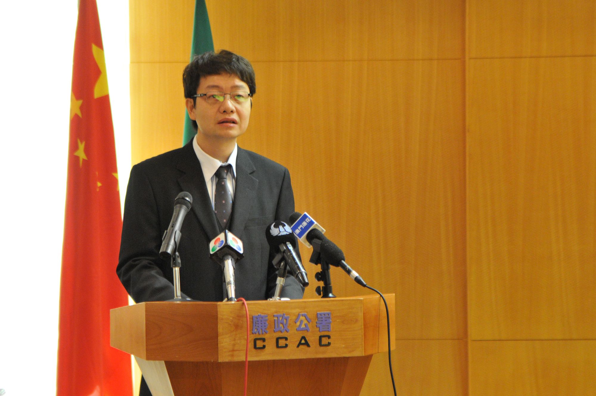 Administered by the Commissioner Against Corruption, Fong Man Chong, the swearing-in ceremony was held at the headquarter of the CCAC at 11:00am. Kuan Kun Hong swore in as the Deputy Commissioner Against Corruption in front of the members of the Monitoring Committee for the Discipline of the CCAC Personnel, lawyer Paula Ling and lawyer Philip Xavier, the Chief of Cabinet of the Prosecutor General, Lai Kin Ian, the Cabinet Coordinator of the Unitary Police Service, Chio U Man and the colleagues of the CCAC.