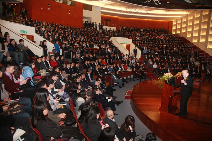 At the invitation of the University of Macau (UM), Nobel laureate in economic sciences Prof. Robert A. Mundell today (23 February 2012) gave a seminar at UM on the European Debt Dilemma and Its Impact on East Asia and World Economy. The seminar attracted over a thousand and two hundred people, including journalists, teachers and students from local universities and secondary schools, practitioners from the financial and banking sectors, government officials, and representatives from various organizations.