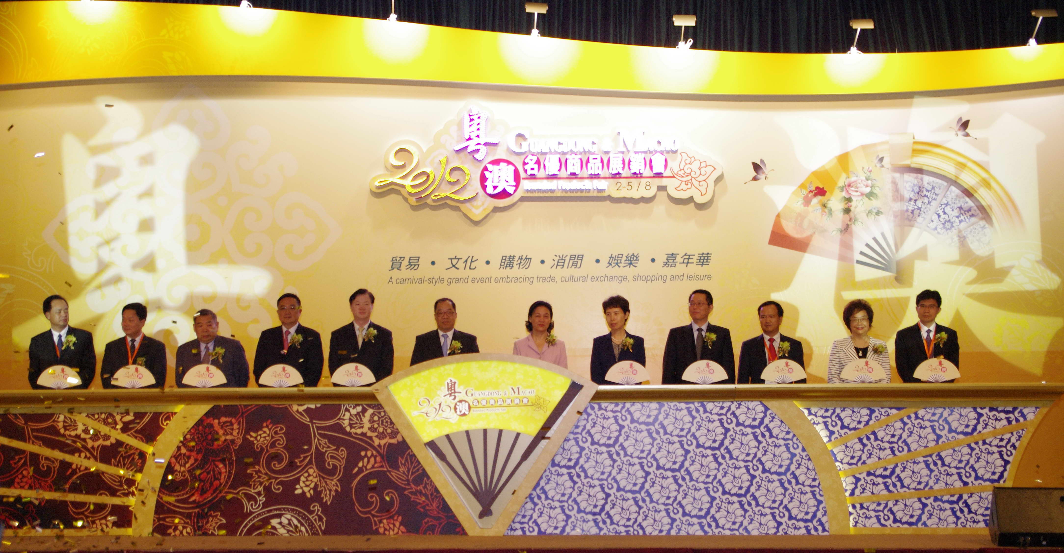 Jointly organized by the Macao Trade and Investment Promotion Institute (IPIM) and the Department of Foreign trade and Economic Cooperation of Guangdong Province, the 2012 Guangdong & Macao Branded Products Fair (2012 GMBPF) was officiated this morning at the Macau Fisherman’s Wharf. The function and the impact of the GMBPF were endorsed by the governments of Guangdong and Macao who ensured the event as a pragmatic way to help boost the cooperation of Guangdong and Macao.