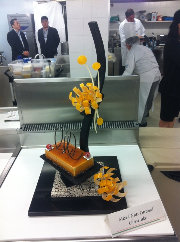 Moreover, Jeffrey, Chak Cheong Lao and Gordon Hoi, graduate of Diploma in Pastry and Bakery teamed up and participated in the “Fonterra Foodservices Challenge 2012 Macau” organised by Angliss Macau Food Service Limited on 10 Oct. The competition was held at IFT with the theme of Cheese Indulgence. The team of Jeffery won the Angliss Media Award with their masterpiece Mixed Nuts Caramel Cheesecake. IFT Pastry Artisans enthusiastically joining various pastry and bakery contests, raising their overall levels. In the past years, the team had achieved excellent results in competitions being held in Hong Kong, Shanghai, etc.
