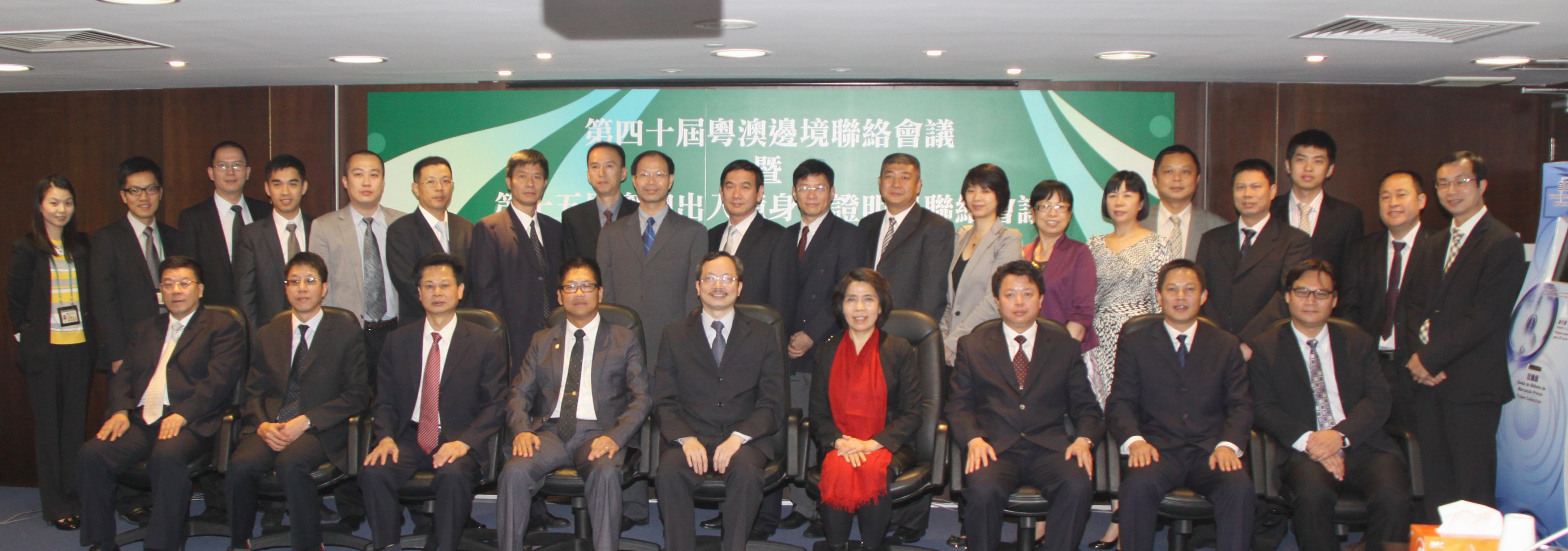 The 40th Border Liaison Meeting and the 15th Identification Services Bureau Liaison Meeting between Guangdong Province and Macao was held in Macao on 30th October 2012. A delegation was led by Ms. Chen Min, Director of the Exit and Entry Administration Bureau of the Public Security Department of the Guangdong Province, and Mr. Li Han-xiong, Deputy Director of the Exit and Entry Administration Bureau of the Public Security Department of the Guangdong Province, together with Mr. He Dong, Deputy Supervisor of Zhuhai Visa Office of Guangdong Provincial Public Security Bureau of PRC, Mr. Liang Jian-wei, Operation Division Director of Zhuhai General Station of Exit and Entry Frontier Inspection of the PRC, Mr. Zeng Xiao-ping, Political Commissar of Gongbei Station of Exit and Entry Fronter Inspection of the PRC, and other superiors and chiefs came to Macao to attend the meeting. On the other hand, the Macao delegation was led by Mr. Lai Ieng Kit, Director of the Identification Services Bureau of the Macao SAR, Mr. Lai Kam Kun, Deputy Commissioner of the Public Security Police Force of the Macao SAR, and Mr. Cheang Kam Va, Chief of the Border Control Division of the Immigration Department of the Public Security Police Force of the Macao SAR. Besides, the representative of the Police Liaison Department of the Liaison Office of the Central People’s Government in the Macao Special Administrative Region has also attended the meeting.