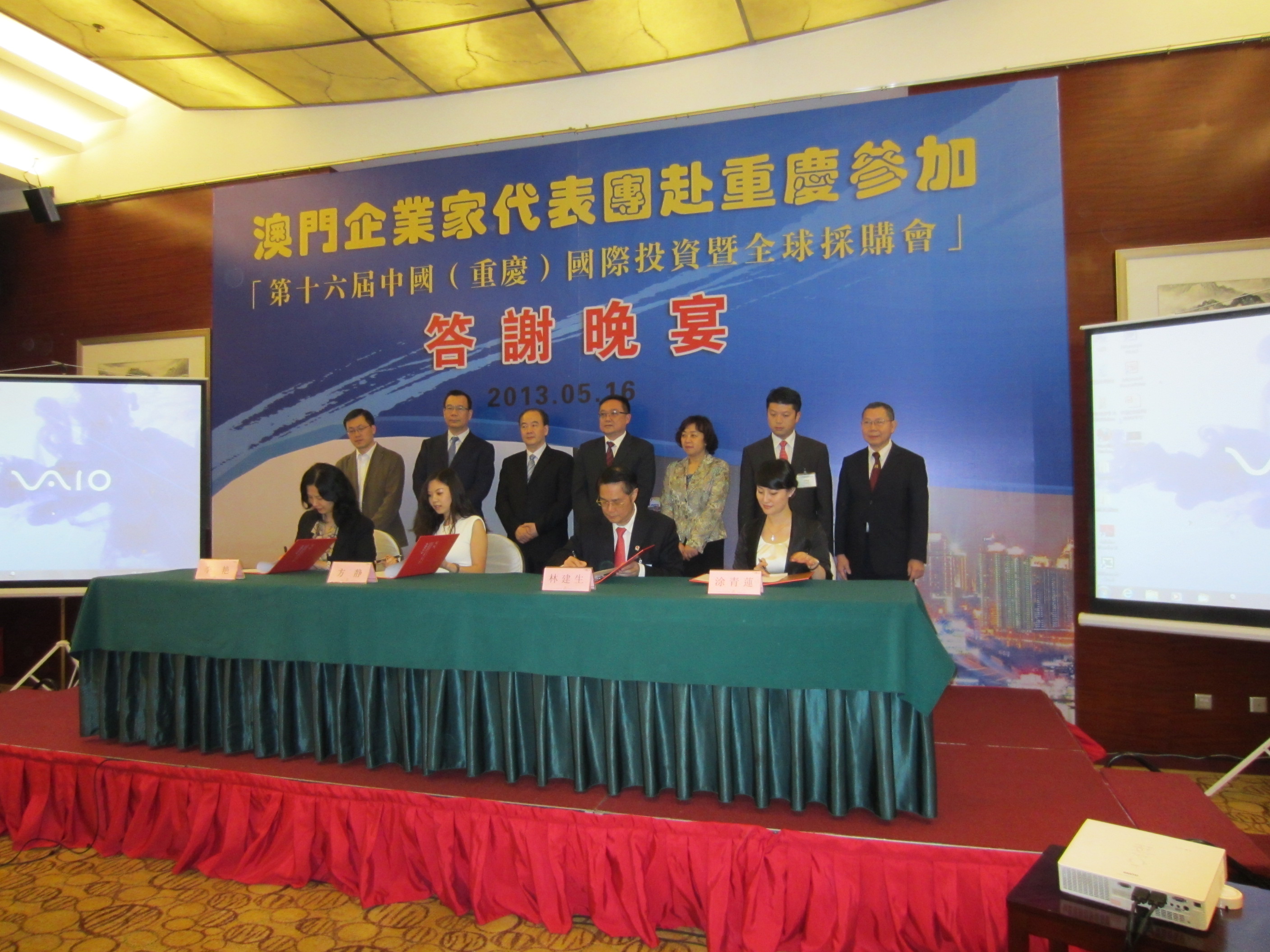 Members of the Macao Business Delegation included the President of Macao German Business Association, Mr. Tony Un, the President of Industry and Commerce Association of Macau, Mr. Kevin Ho Keng Lung, the President of Macau Photography and Printing Traders Association, Mr. Lou Cheok Veng, the Macao Member of the Chinese People´s Political Consultative Conference, Chongqing Committee, Mr. Lam Tsang Kun, the President of Federation of Commerce and Industry of Macao-Shandong, Mr. Ao Ion Veng, the Honorary President of Macao Small and Medium-Sized Enterprises Association, Mr. Lam Kin Sang and the Executive Director of Macao Association of Building Contractors and Developers, Mr. Lei Fat Kun.