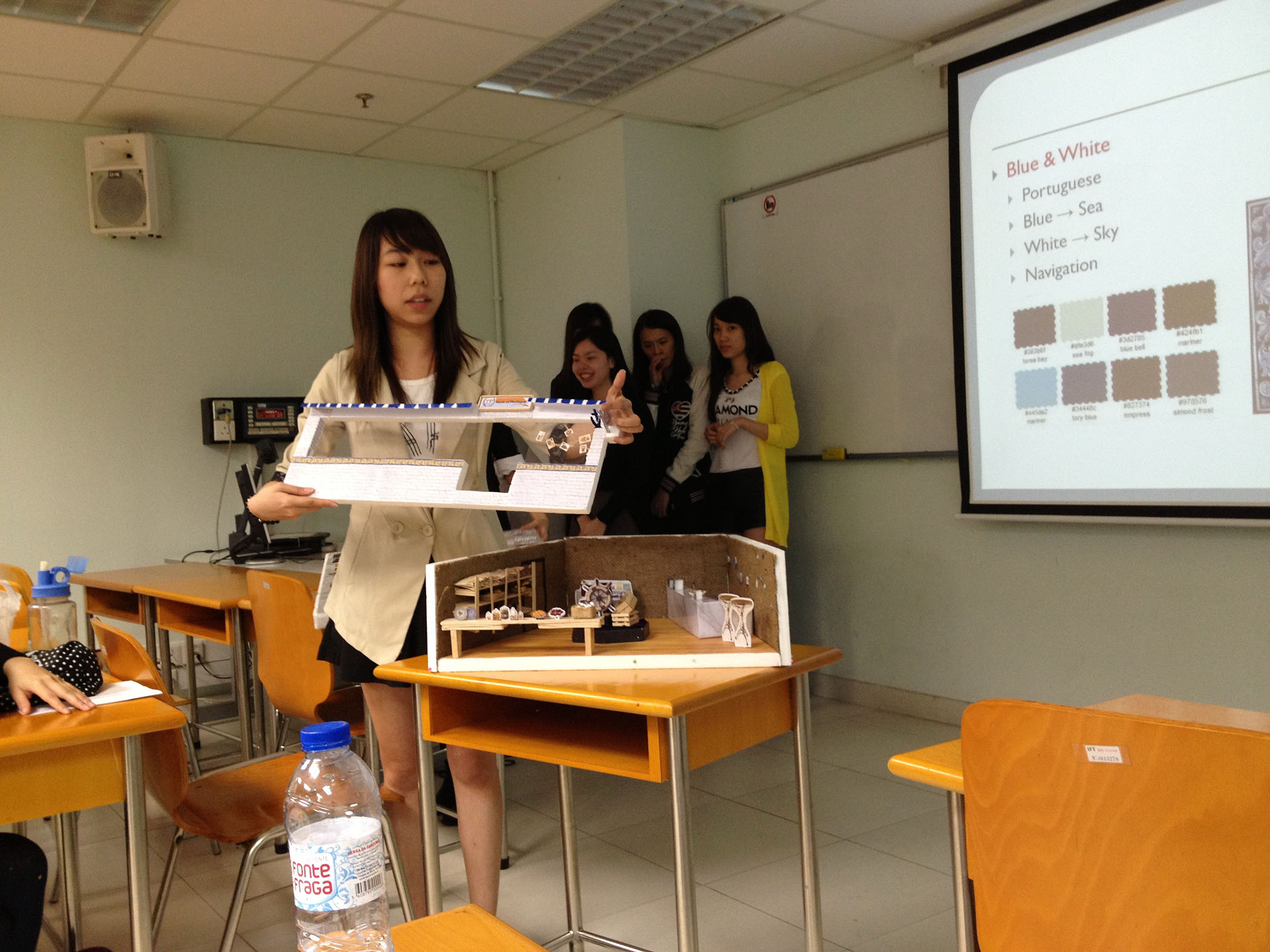 We are very happy to announce the successful completion of a project by our Year 4 Tourism Retail and Marketing Management students taking the Visual Merchandising and Store Design course lead by Dr. Fernando Lourenço to help a local entrepreneur (Vanda Rodrigues) to develop a range of store design concepts for a new food outlet targeting tourist in Macao. The design theme for the store was set to ‘showcase the heritage of Macao and its colonial past’.