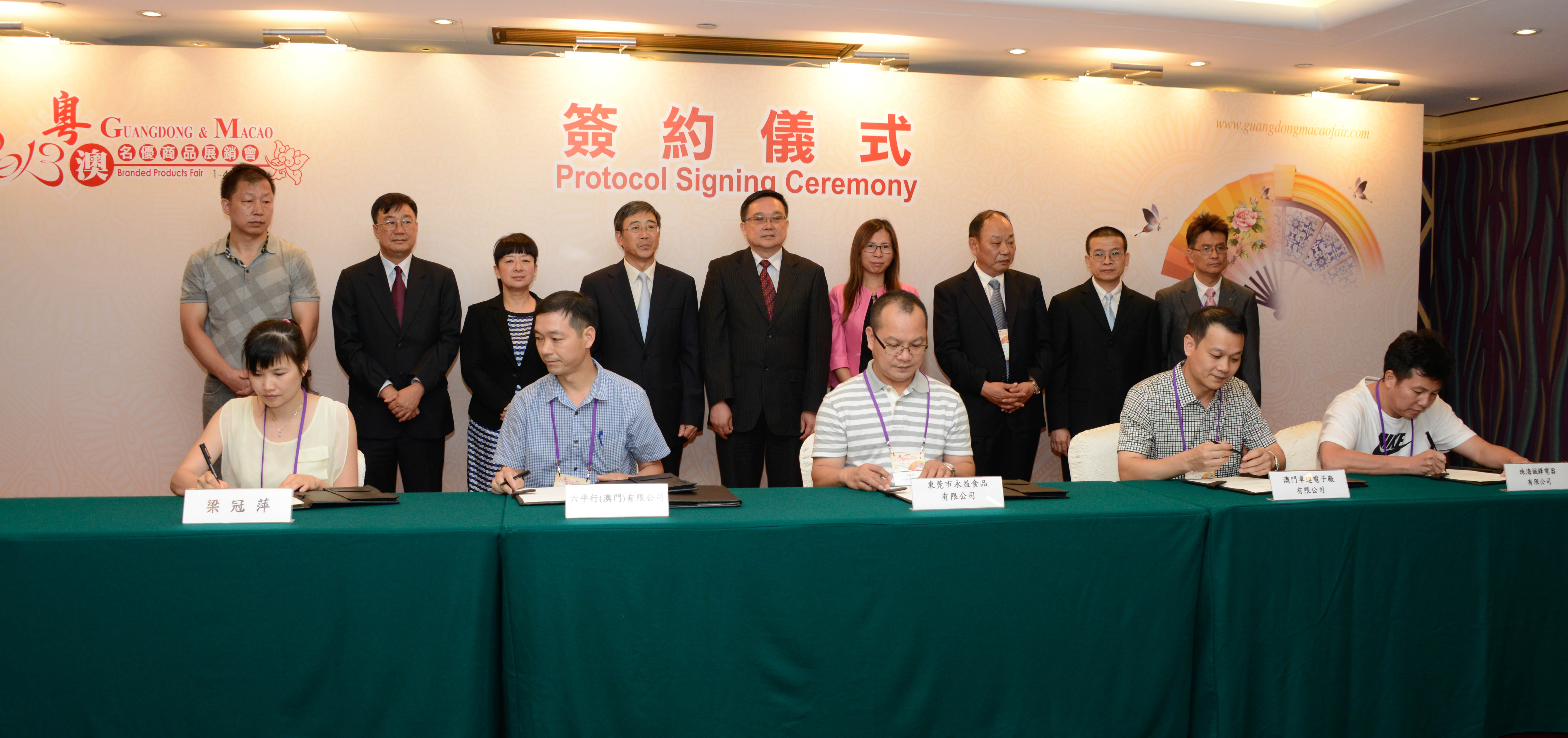 On the first day of the event, 298 business matching sessions and 9 protocols were concluded, including the Memorandum of Co-operation of “2014 Macau-Guangzhou Famous Products Fair”, Contract on Establishing of “Veng Peng Frozen Food Processing Factory”, agent and procurement intentions on different products, etc. Investors involved are from Guangzhou, Zhuhai, Foshan, Zhanjiang, Shantou, Dongguan, Macao, etc.
