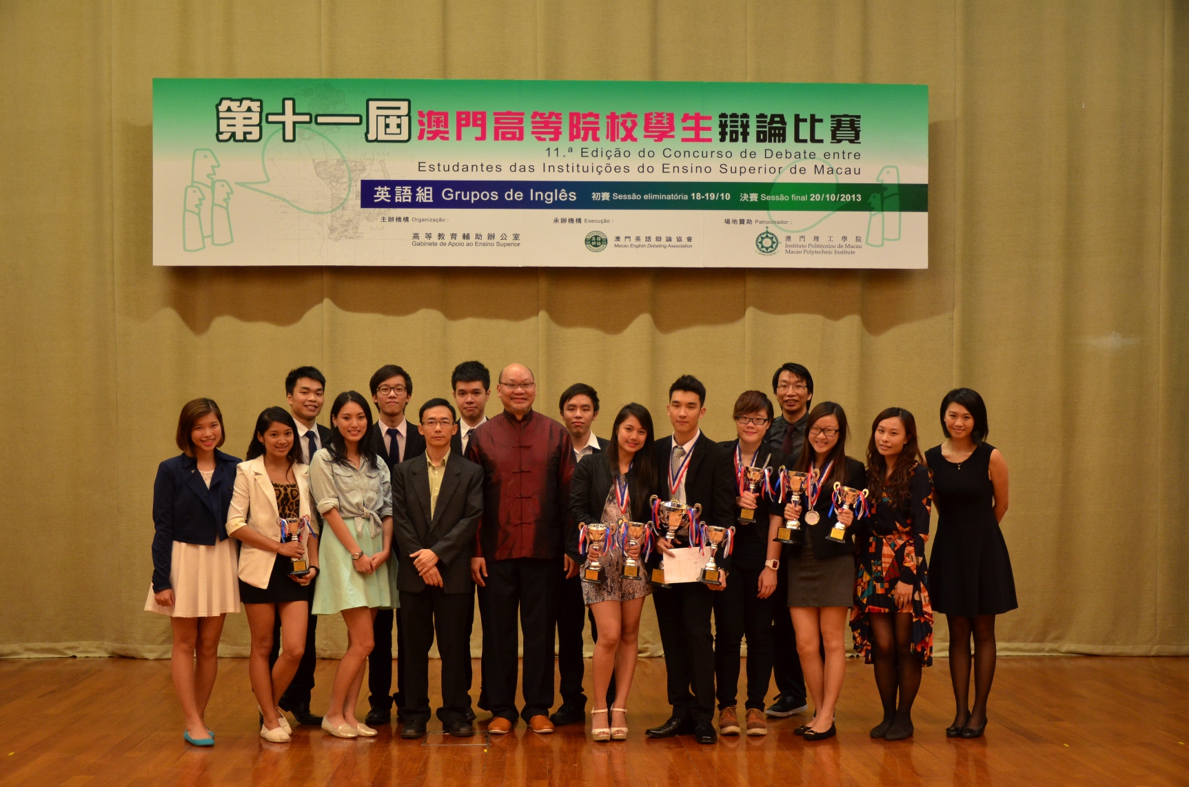 At the Eleventh Macao Inter-Tertiary Debate Competition (English Debates), which was held at the Macao Polytechnic Institute from 18 October to 20 October, the University of Macau (UM) won the championship and all individual awards, including the Best Debater Award in the grand final, as well as five Best Debater Awards in the preliminary rounds. This is the sixth consecutive year UM’s English Debating Team has won the championship at this competition. Two teams from UM went straight to the grand final for their excellent performance.