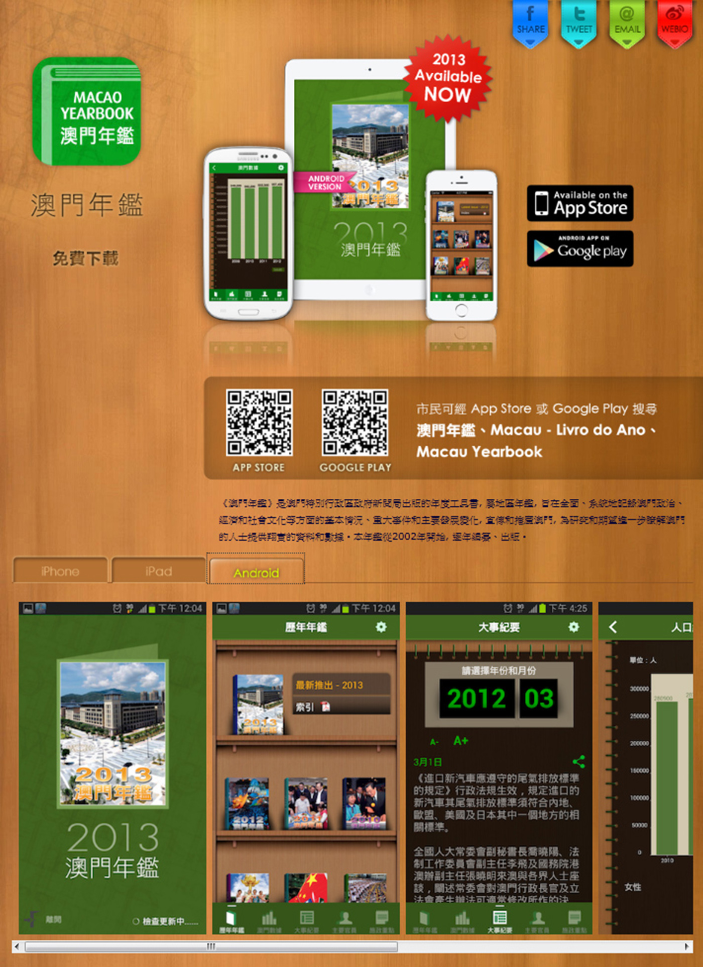 The App allows users to freely download the 2002-2013 editions of Macao Yearbook.