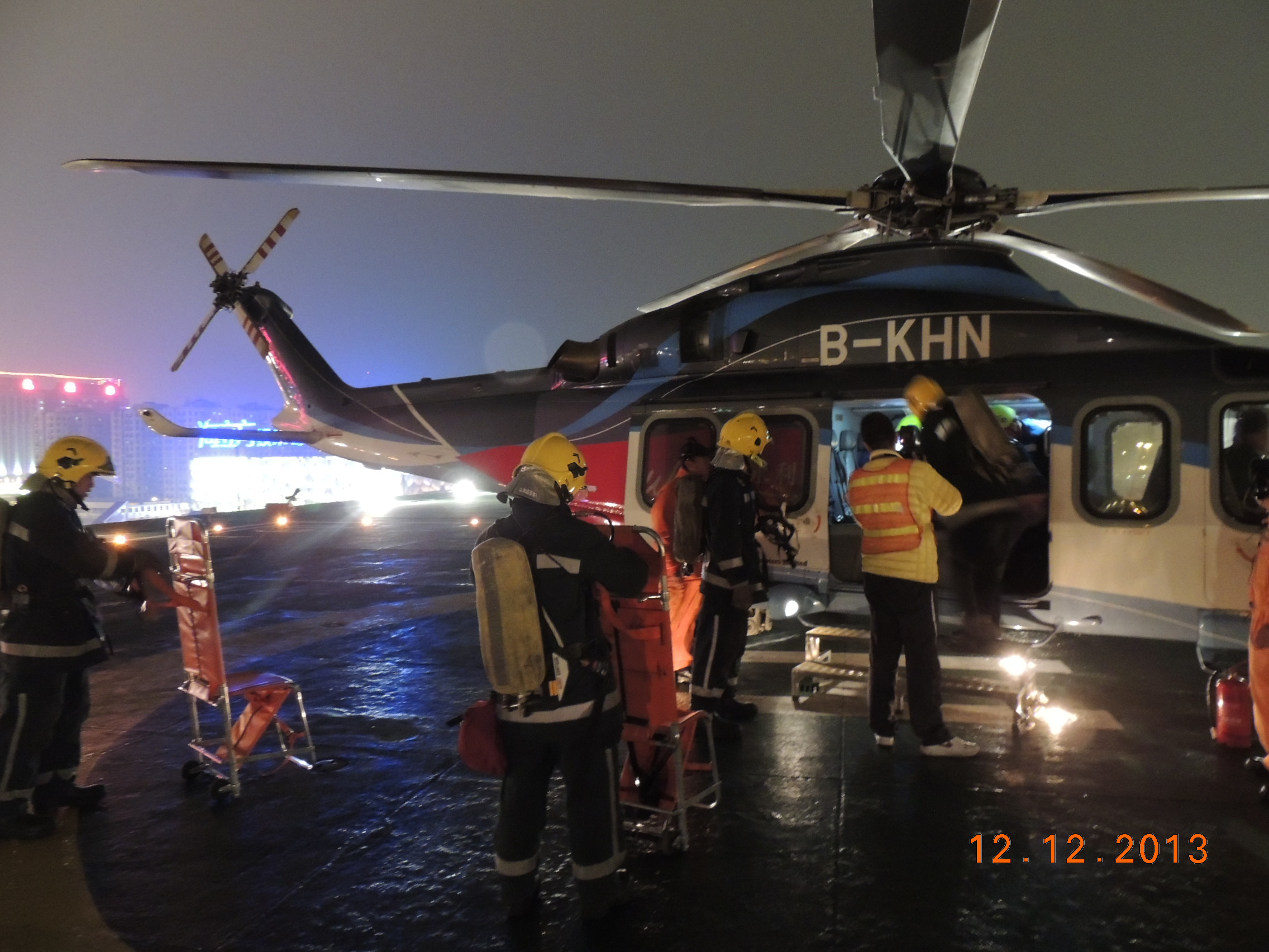 To test and train the personnel with the capacity to handle emergencies, the annual full-scale emergency exercise was carried out in the Macau Heliport on 12 December 2013 to simulate a helicopter accident and the response of all relevant entities to cooperate with each other to handle this emergency in accordance with the respective contingency plans. The exercise was deemed smooth.