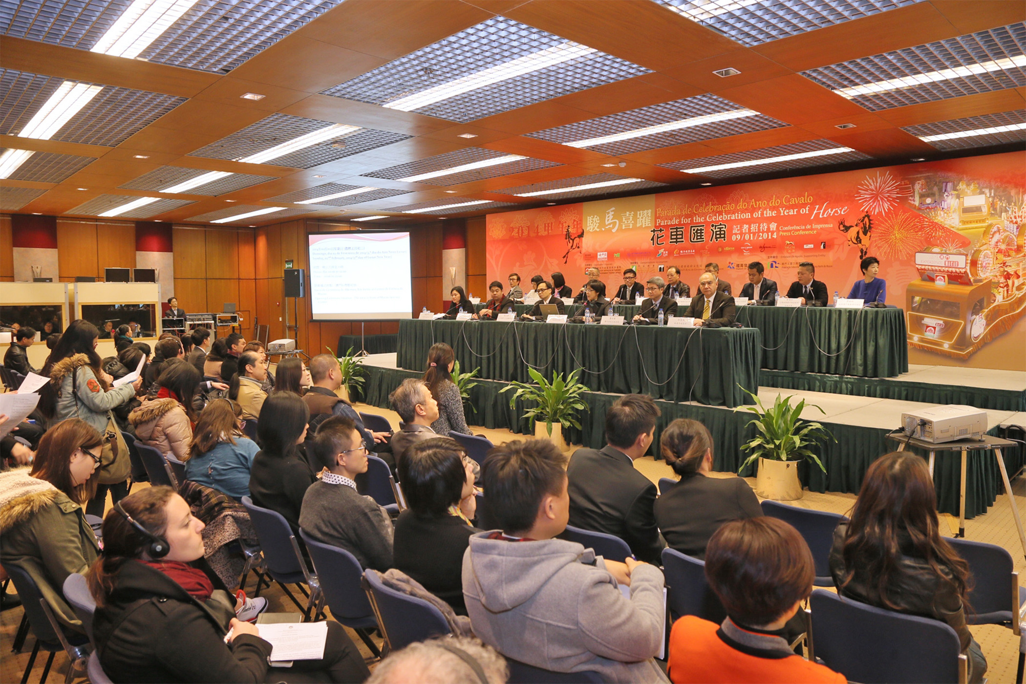 Director Senna Fernandes expressed that the “Joyous Celebration to the Bountiful Year of the Horse” will be more spectacular than last year’s corresponding celebration event. This year the event not only features 13 floats in the parades and 23 local groups which will stage artistic performances along the way but also has invited eight performing groups from the Mainland; Hong Kong; Taiwan, China; Malaysia; Japan; Indonesia; Korea and Portugal for a more vibrant and fascinating program. There are 1,038 performers in total. The sponsors of the parade floats include China National Tourism Administration, Exmoo News, Macau Legend Development Ltd., Sociedade de Jogos de Macau, S.A., Galaxy Entertainment Group, Cotai Strip Resorts Macao, Suncity Group, City of Dreams, Wynn Macau and MGM MACAU. On the other hand, TurboJET and Macau Tower Convention and Entertainment Centre are the performance sponsors.