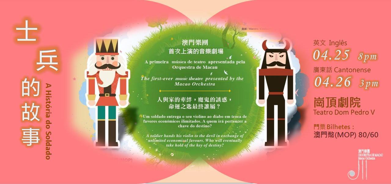 The Macao Orchestra de (OM) presents its first chamber opera in the concert L’Histoire du Soldat (A Soldier’s Tale) in English and Cantonese, to take place on April 25 and 26, respectively, at the Dom Pedro V Theatre. Tickets are available at the Kong Seng Ticketing Network outlets.