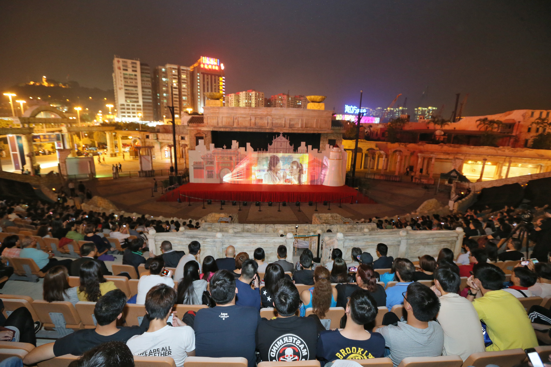 The six-minute 3D Mapping Show “Icons‧Macau” is scheduled to take place for free admission at the Roman Amphitheatre of Macau Fisherman’s Wharf every ten minutes from 8 p.m. to 10 p.m. daily during 27 April – 11 May. MGTO Director Maria Helena de Senna Fernandes, Macau Legend Development Limited Co-Chairman, Executive Director and Chief Executive Officer David Chow Kam Fai, MGTO Deputy Directors Cecilia Tse and Cheng Wai Tong, and Acting Director of Operations of Macau Fisherman’s Wharf Kenny Iao officiated the kick-off ceremony of the 3D mapping show.