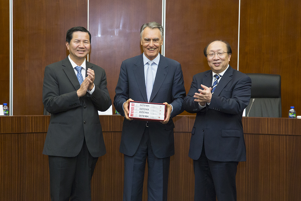 The University of Lisbon and the University of Minho signed two memoranda of understanding (MOUs) on academic collaborations with UM. Rector Wei Zhao, Rector António Cruz SERRA, and Rector António M. CUNHA signed the MOUs on behalf of their respective universities. The signing ceremony was witnessed by Portuguese President Silva, Minister of Defence and Minister of State and Foreign Affairs of Portugal Rui Machete, Minister of Education and Science of Portugal Nuno Crato, Secretary for Social Affairs and Culture of Macao SAR Cheong U, and UM Vice Rector Rui Martins. UM has a long-standing collaboration with the two universities. The signing of the agreements is expected to further strengthen contact and cooperation between faculty members, departments, and research institutions at UM and the two universities. UM and the two universities will carry out collaboration in various forms, including having each other’s staff deliver lectures, hold seminars and discussions, teach courses, and conduct research and supervise students’ studies; having each other’s students attend courses and carry out studies; joint development of teaching programmes; and collaboration of faculty and students in research projects, etc. The main areas of focus will be Portuguese Studies (at the two universities in Portugal), and Chinese and Asiatic Studies (at UM). Additionally, UM’s State Key Laboratory of Quality Research in Chinese Medicine and the Portuguese company Technophage signed a collaboration agreement, signalling the official start of collaboration between the two parties in Chinese medicine.